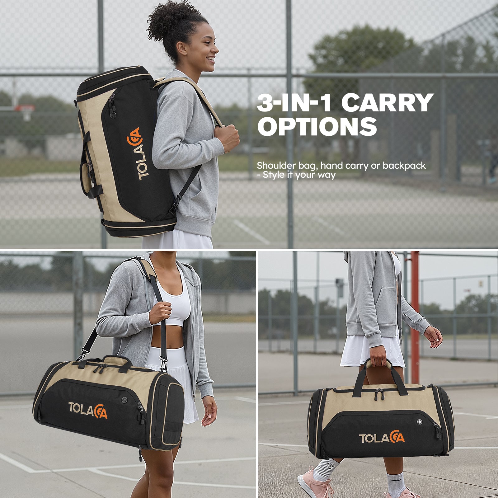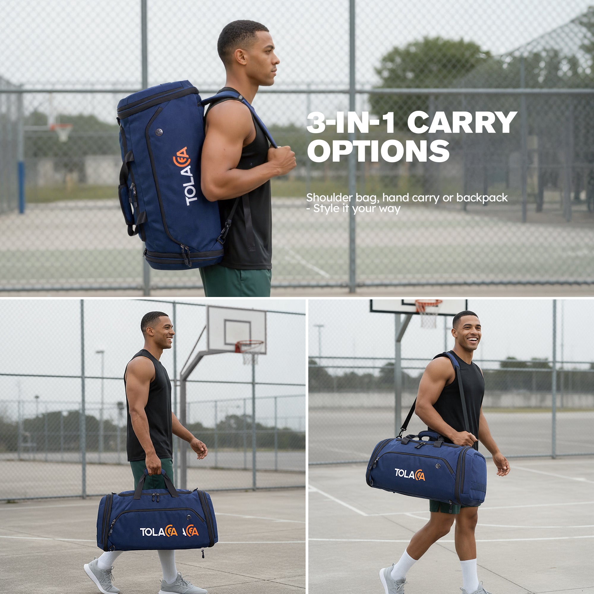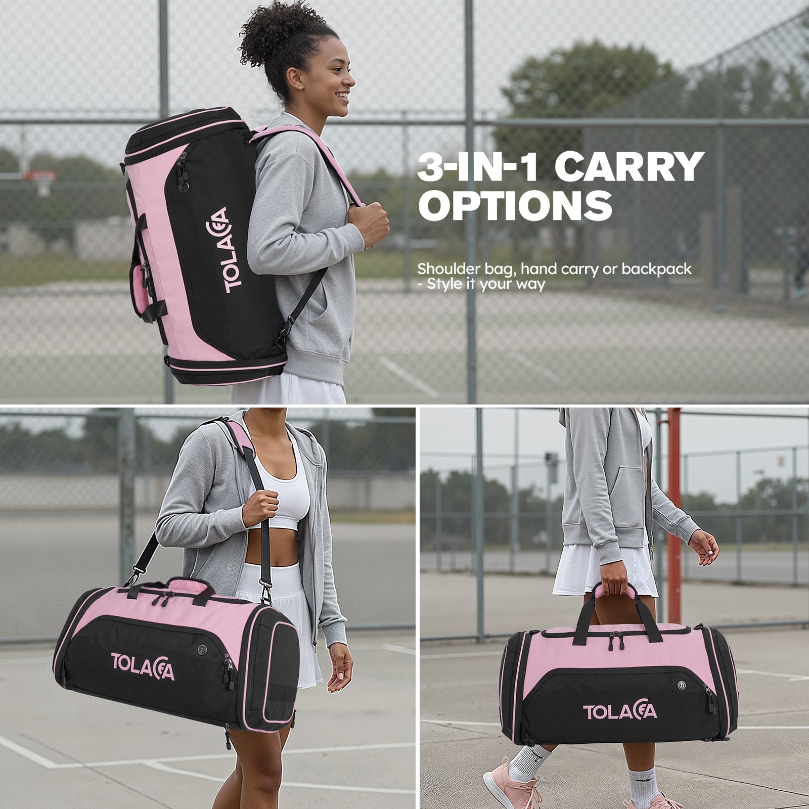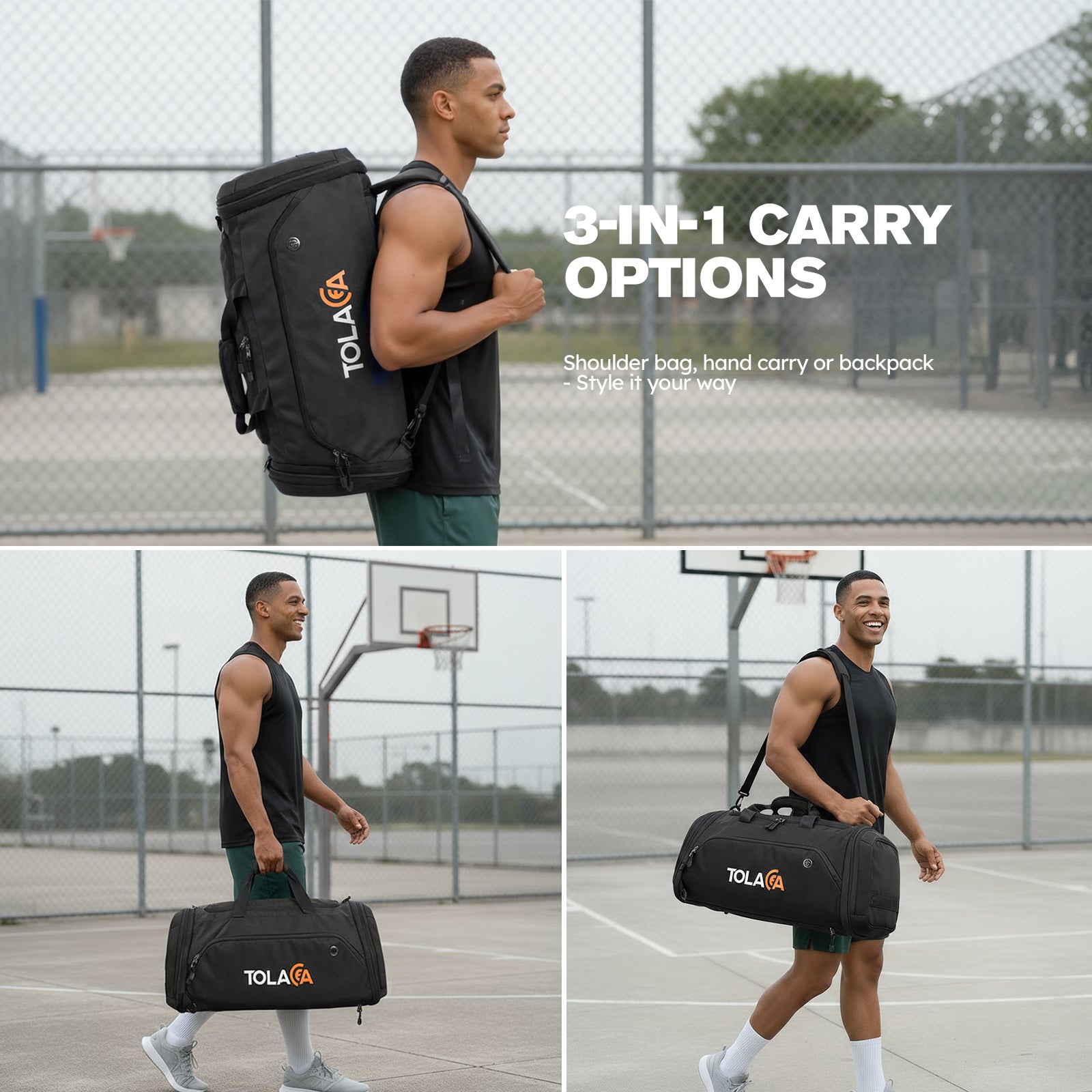 This duffel backpack bag offer versatile carrying styles, including,Backpack (with adjustable straps),Shoulder bag,Duffle/hand carry.