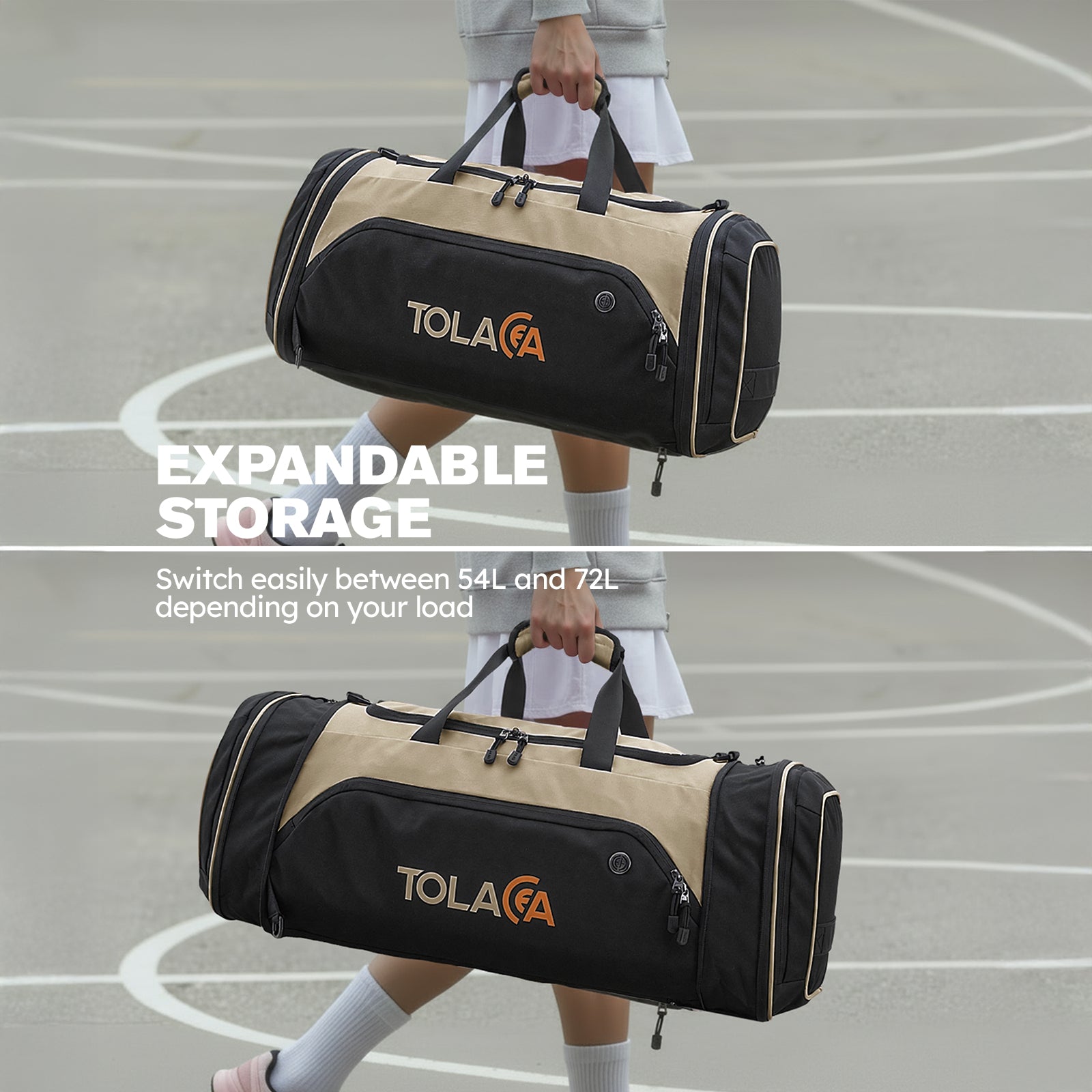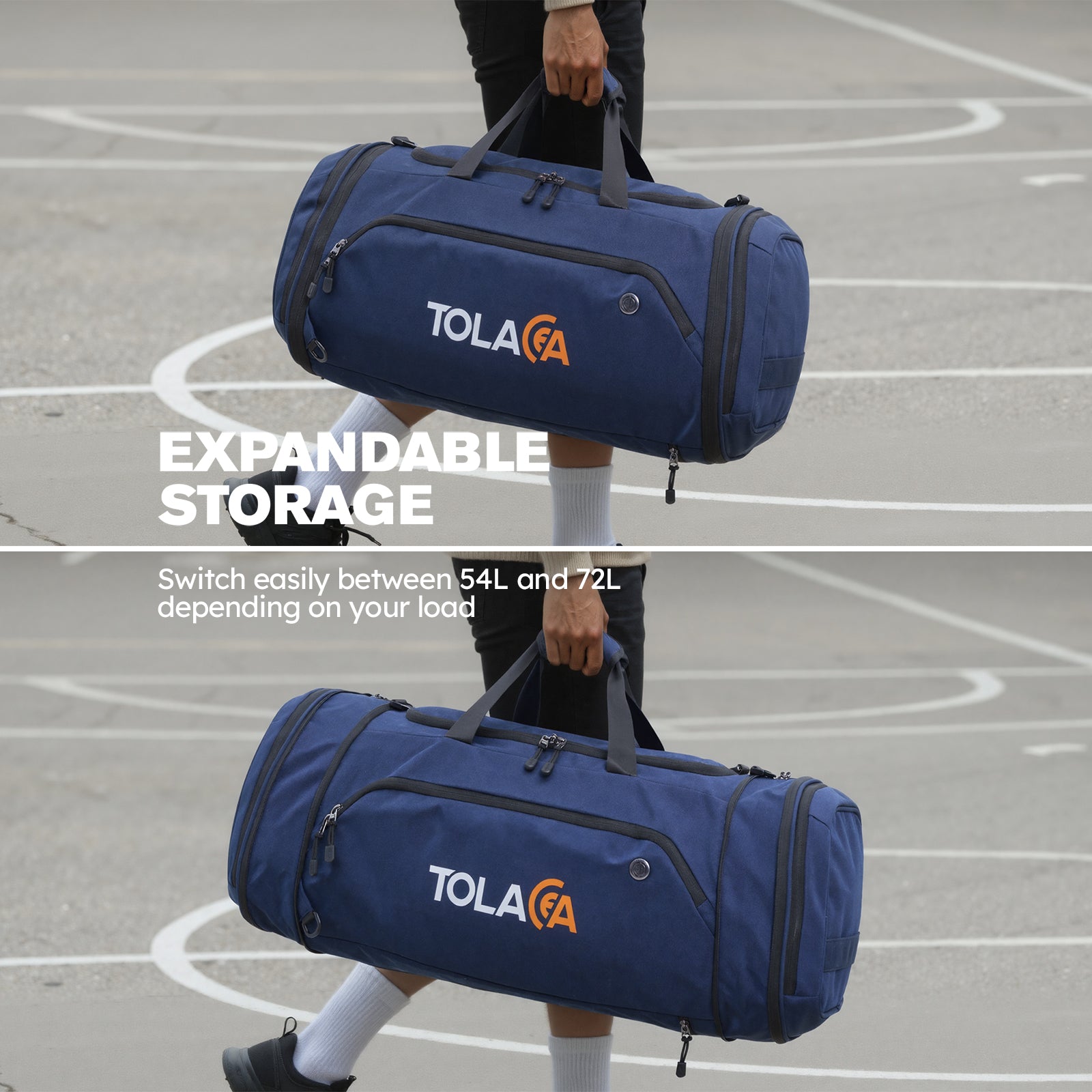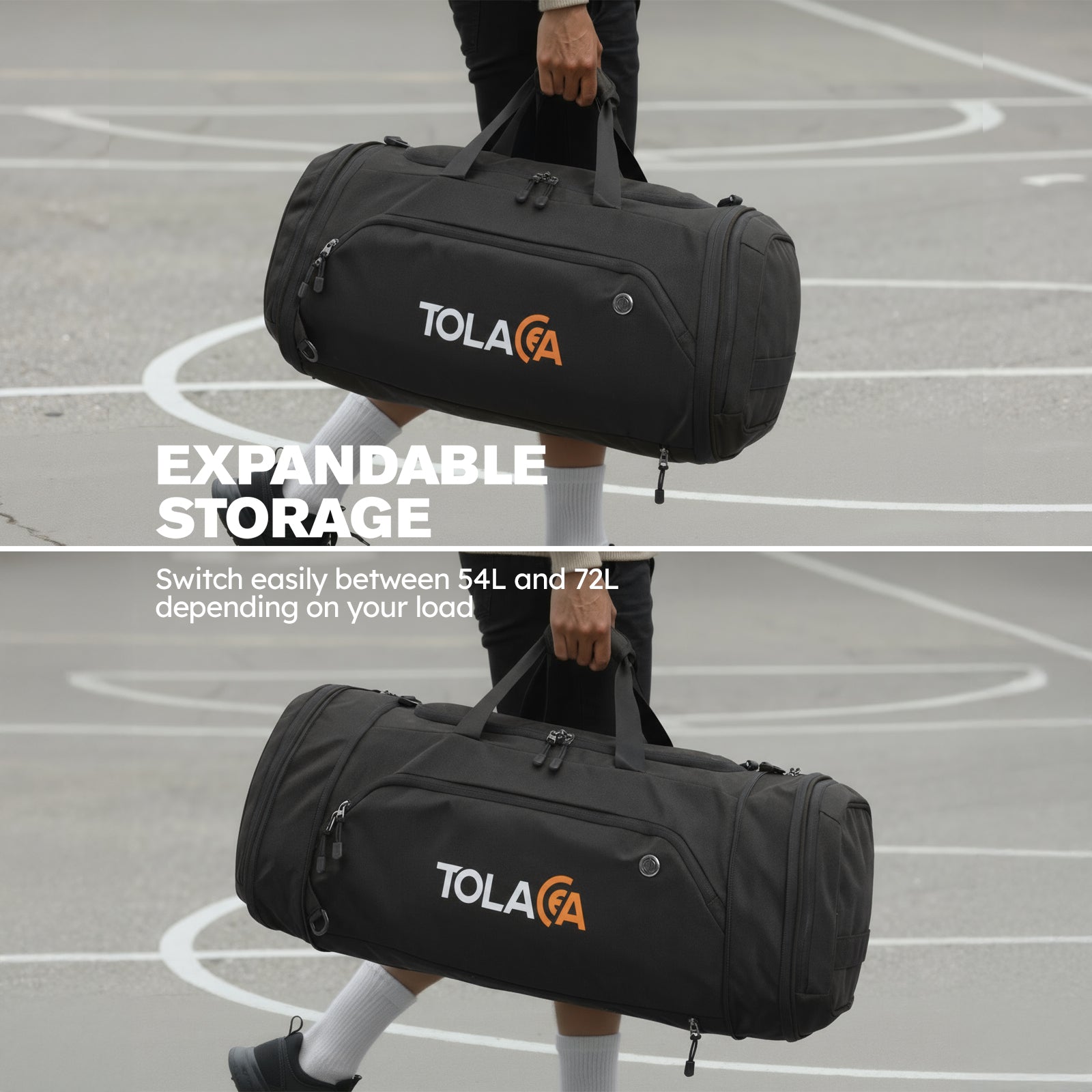 Tolaccea 54-72L Gym & Travel Backpack, Unisex Sports Duffle Bag With Shoe Compartment