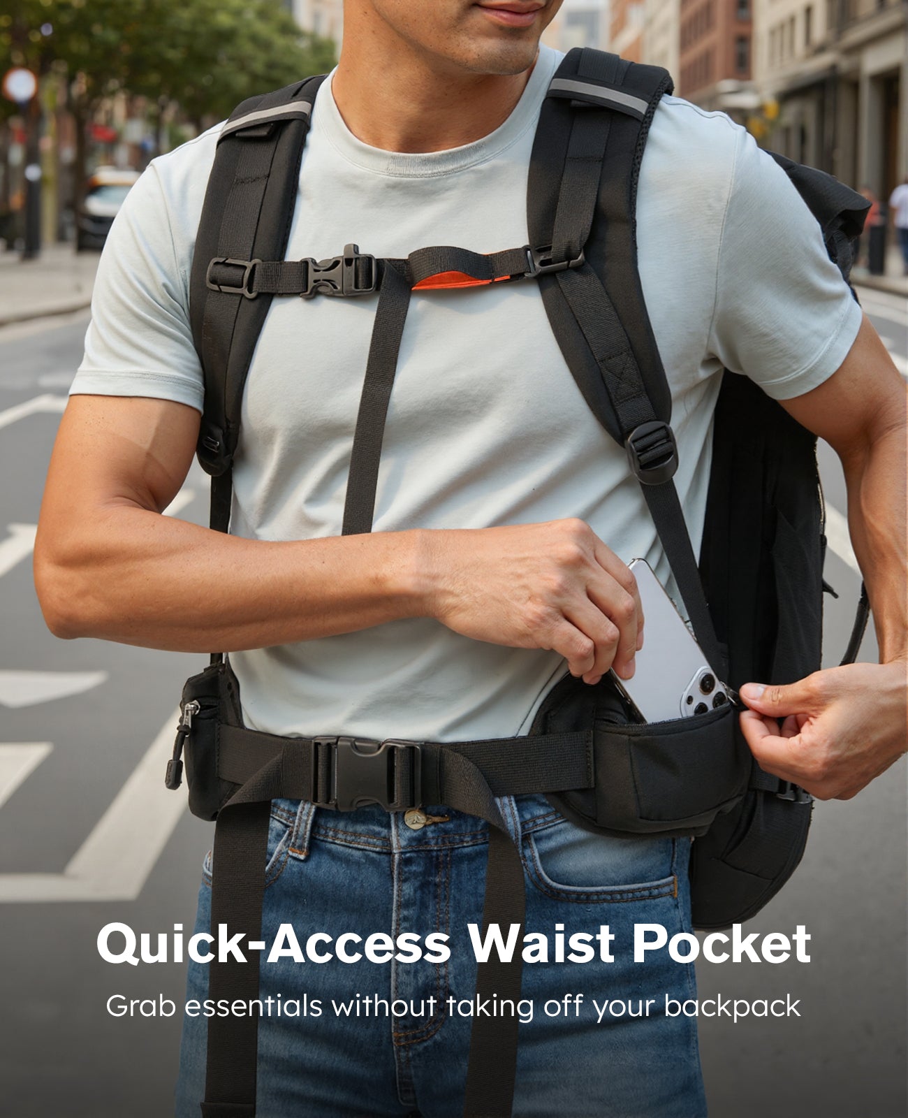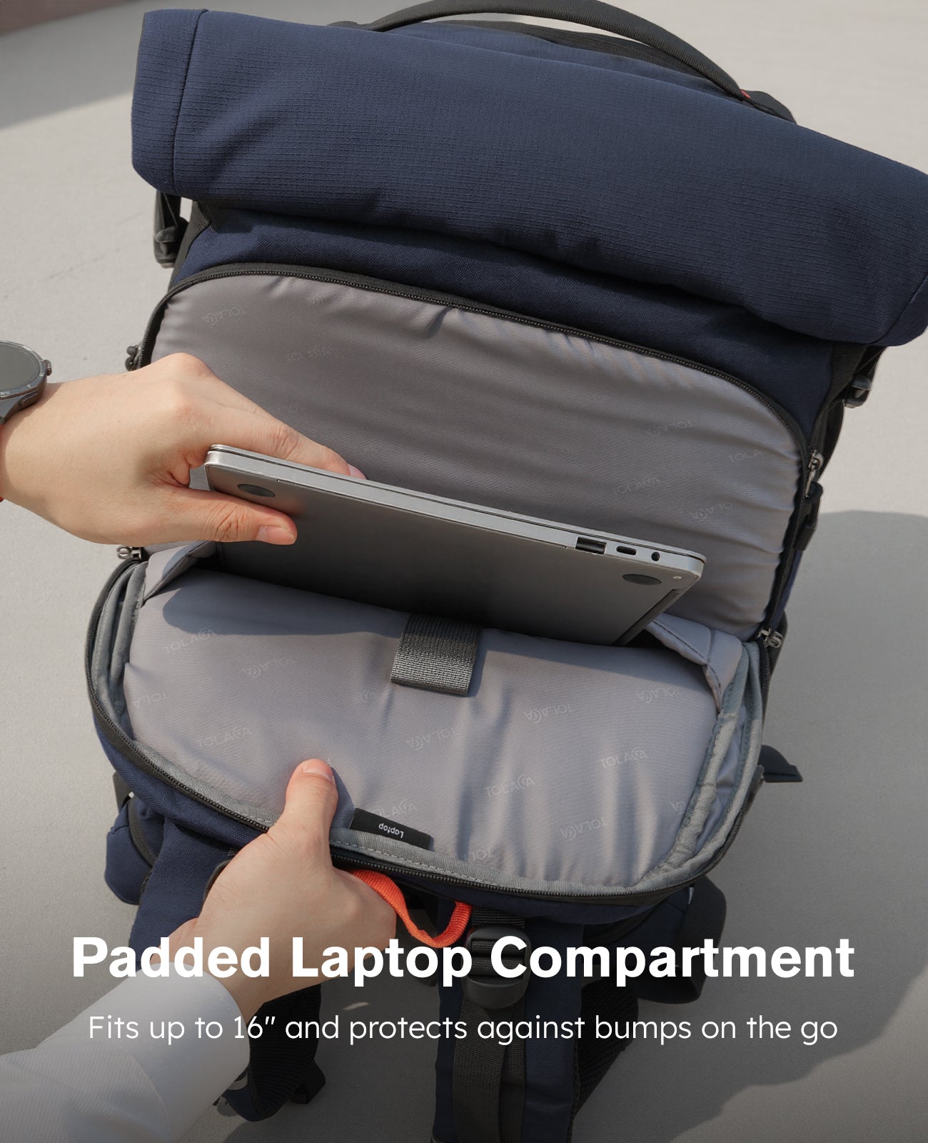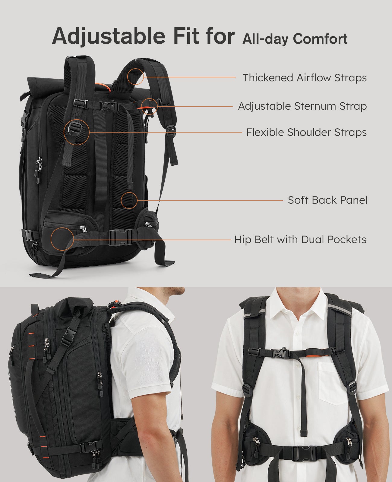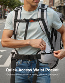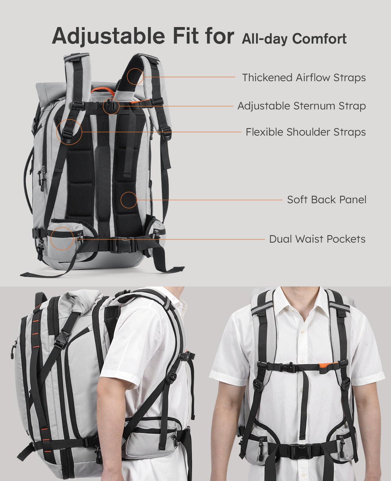 The Roll-Top Expansion feature provides an additional 5 liters of storage capacity. When you need more space, simply unfasten and unfold the roll-top. When carrying fewer items, you can roll it back down to maintain a compact and streamlined profile. Additionally, a zipper underneath the roll-top offers direct access to the main compartment without having to open the entire roll-top, making it very convenient.
