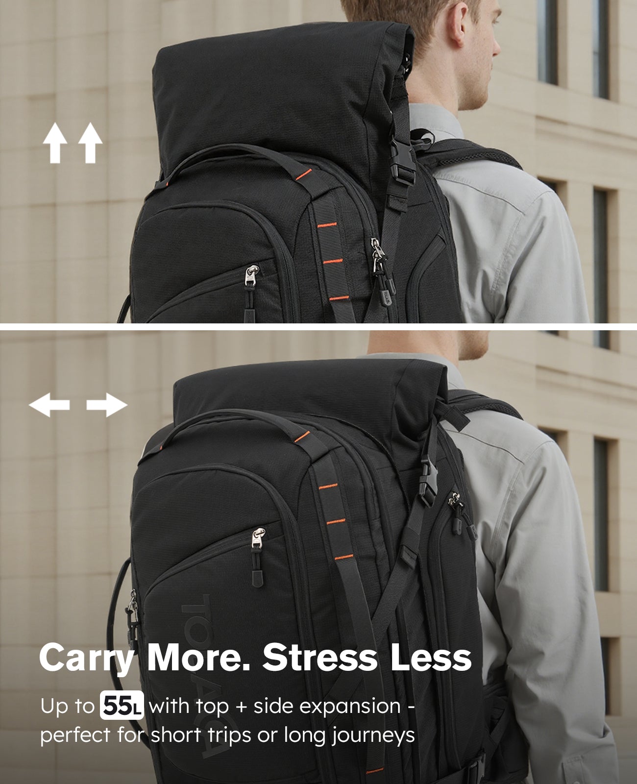 Tolaccea Mlife 07 | Expandable 40L to 55L Roll-Top Travel Backpack
