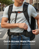 The zippered pocket on the right side of the backpack is a quick-access compartment designed to let you swiftly and conveniently grab small, frequently used essentials while on the move, without needing to take off the backpack or open the main storage. It's perfect for items like your phone, keys, power bank, or transit card.