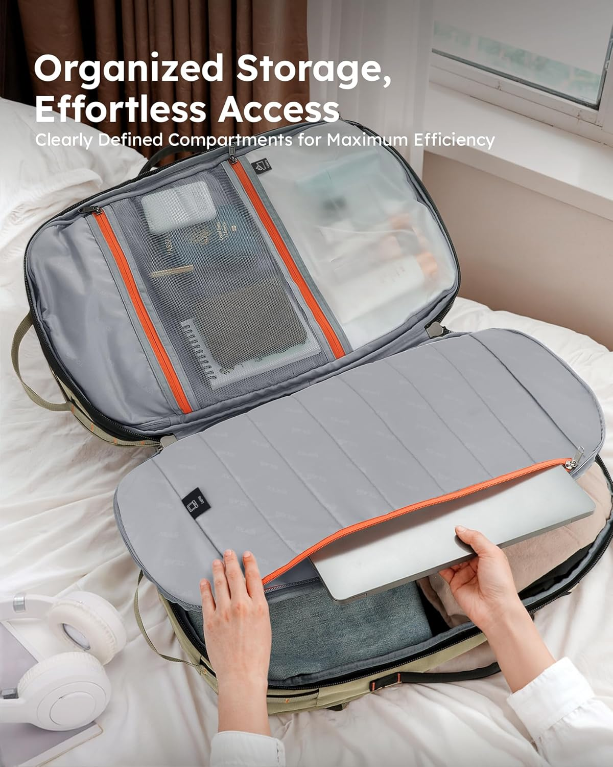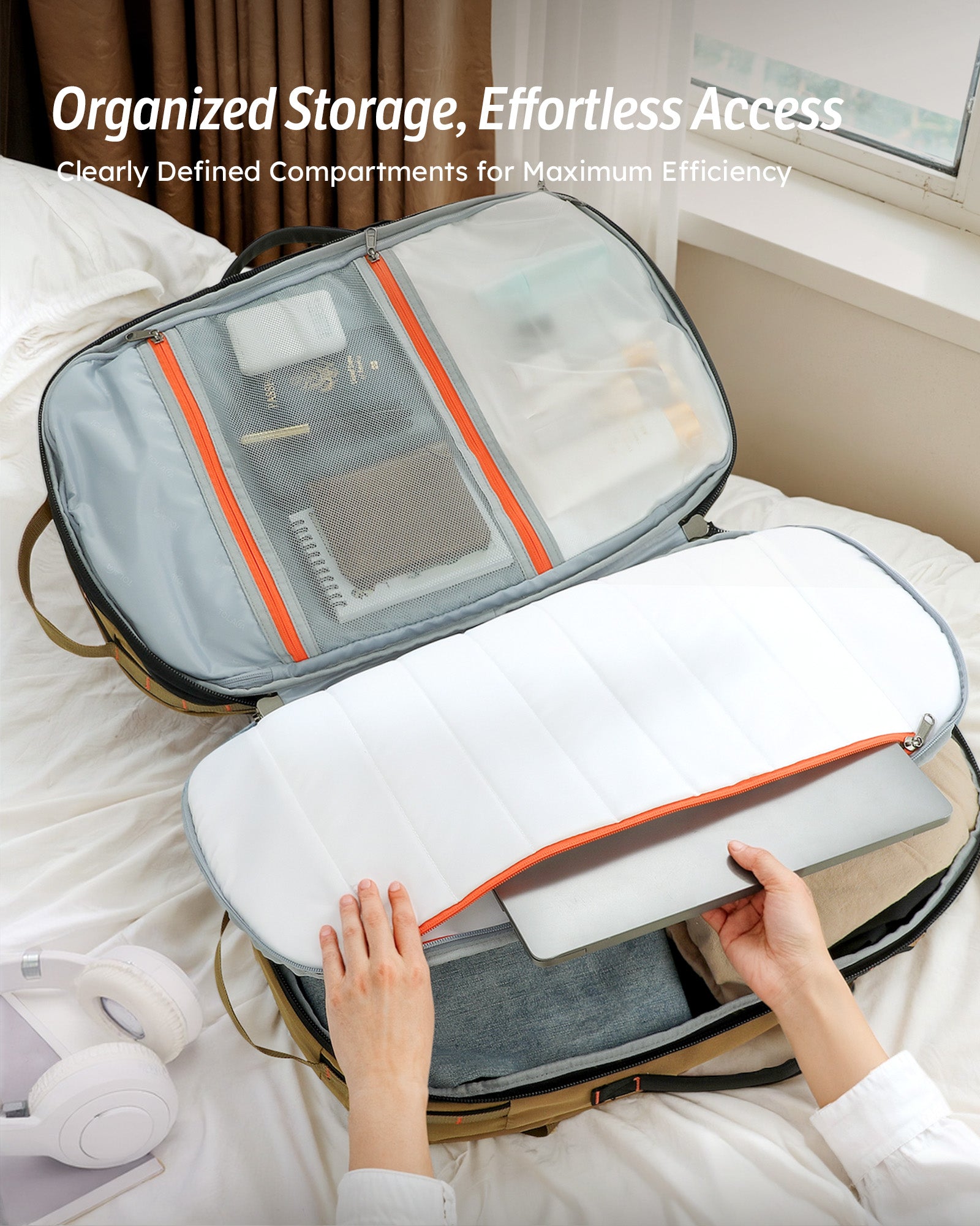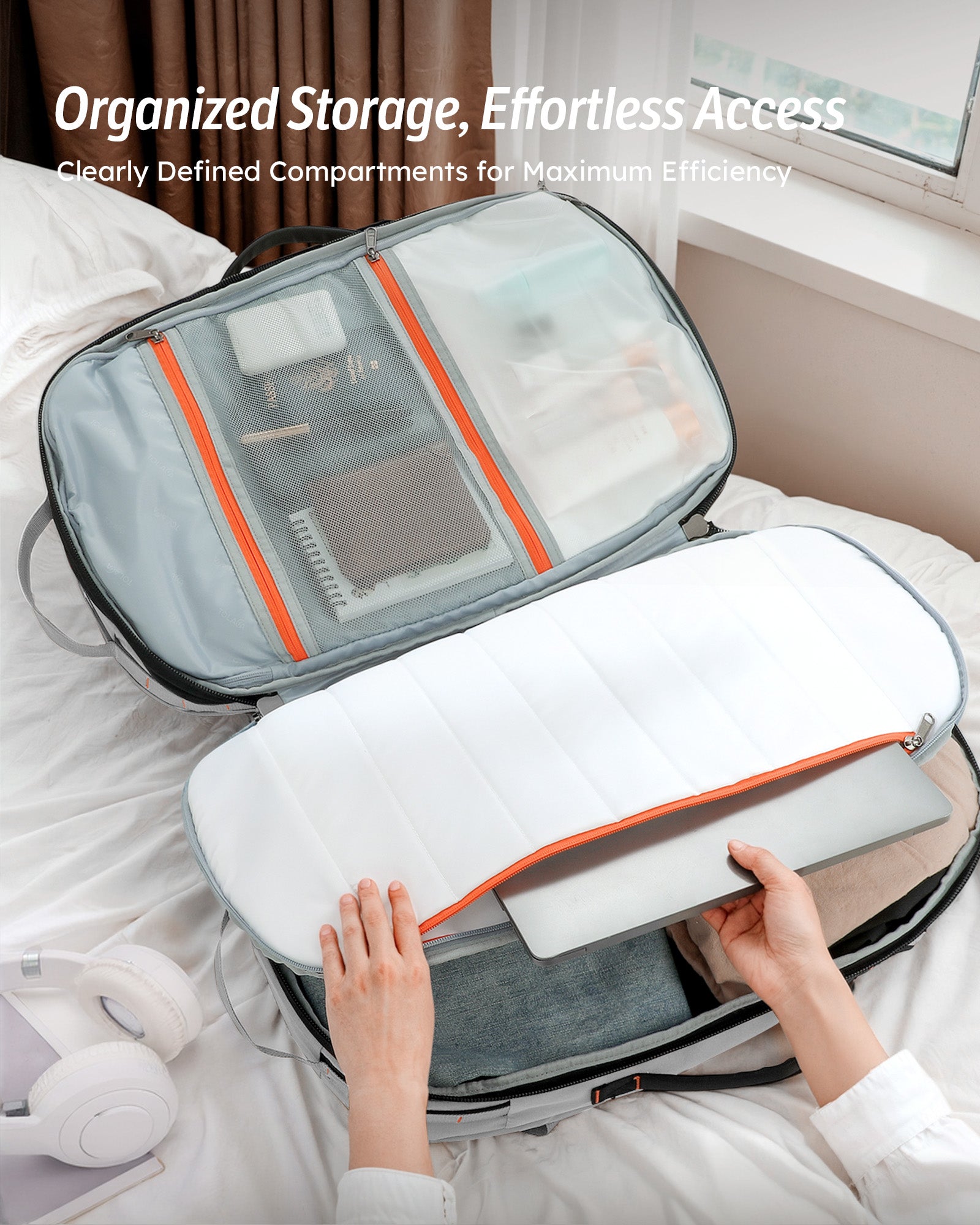 Tolaccea Mlife 03 Travel Backpack, Expandable Carry On with Quick-Access Laptop Compartment & 3-Way Carry,40-50L