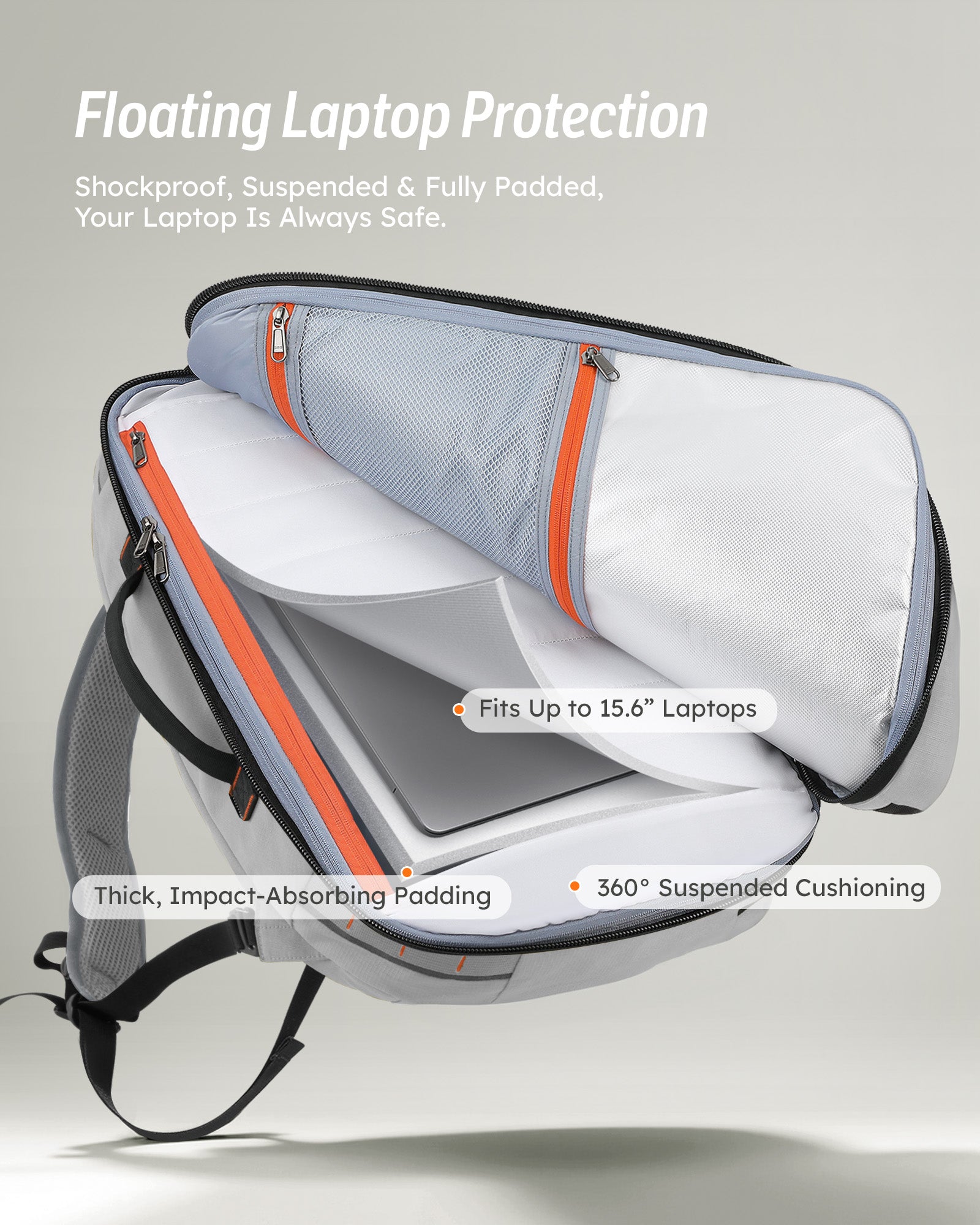 How does the suspended laptop compartment protect my device, and how do I access it?