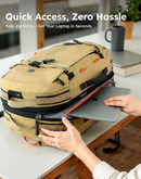 The laptop compartment is designed with a suspended, shock-absorbent sleeve that cradles your device (up to 15.6 inches), lifting it away from the bottom and sides of the bag. This protects it from impacts and shocks if the bag is set down hard. For quick access, a dedicated side zipper allows you to retrieve your laptop instantly without ever needing to open the main compartment.