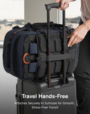 On Luggage: Using the rear luggage strap to slide it over your suitcase handle.
