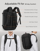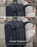 The backpack has an expandable design that increases its capacity from a standard 45 liters to 55 liters. This expanded space is perfectly suited for trips lasting 3 to 5 days, as it can easily accommodate multiple outfits, shoes, and other travel essentials. An included bonus toiletry bag helps keep smaller items organiz.